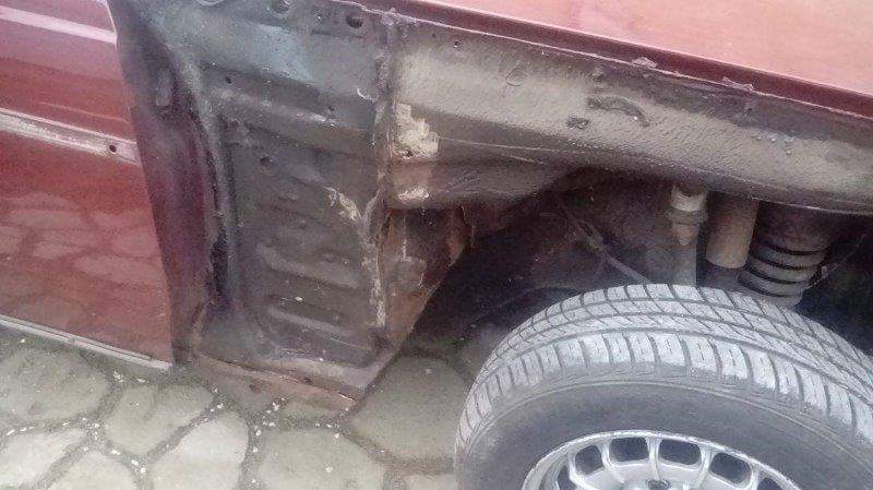 )Kupiłem nowe przednie blotniki,tylny pas, reperaturki drzwi.Tne wszystko jak leci, może uda mi się tego złoma uratować.Lewa tylna podłużnica w kiepskim stanie,w podłodze też jest kilka dziurek -wstawię nowa.