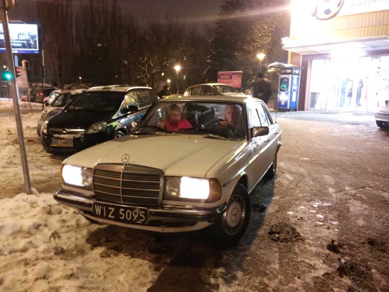 Spotkany na Warszawskim Ursynowie, parę razy mi śmignął aż wczoraj wysiadam pod biedronką i słyszę znany nam wszystkim klekot... jest! Auto jest od 32 lat w rękach jednej rodziny - najpierw ojciec, teraz syn. 300D 1984, trudno mi sobie wyobrazić jakie to musiało robić wrażenie w 1984 - wokoło tylko maluchy i 125p, benzyna na kartki a ropa nie Świeżo po blacharce.
